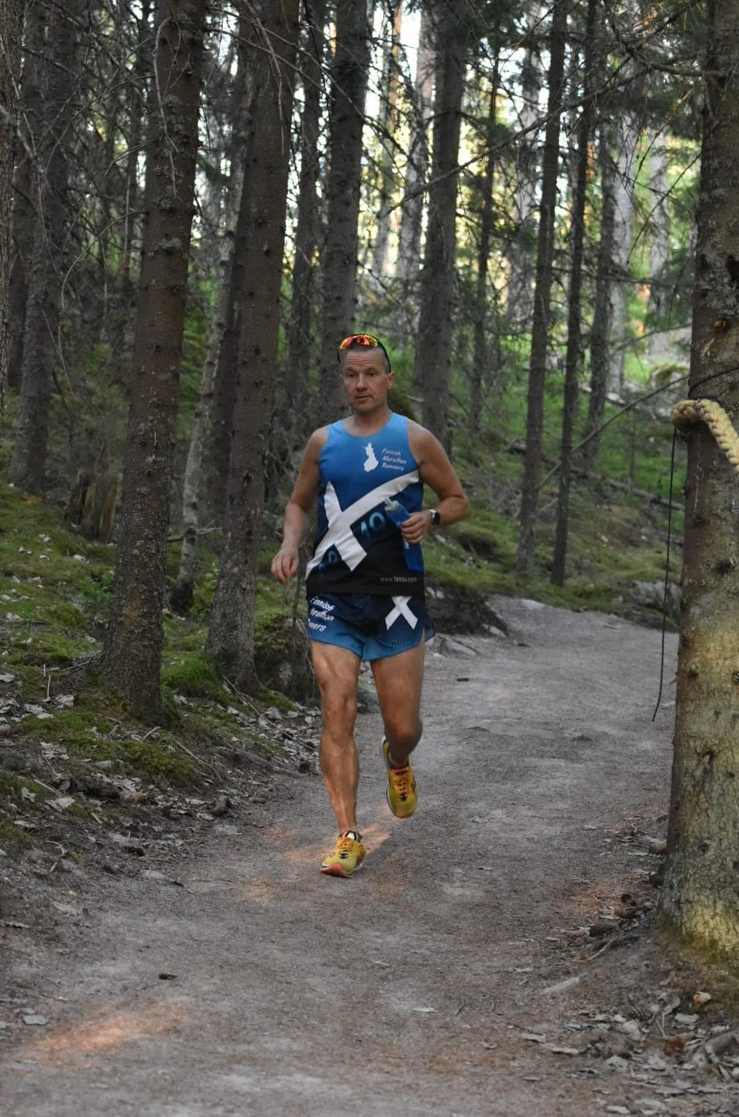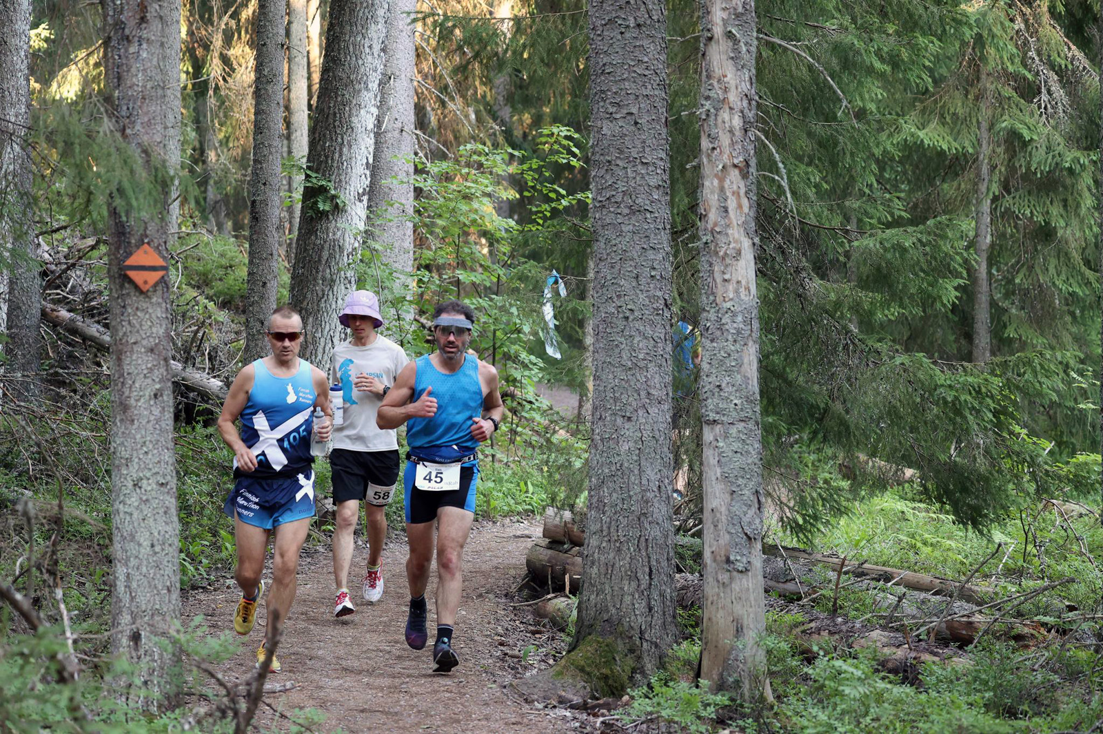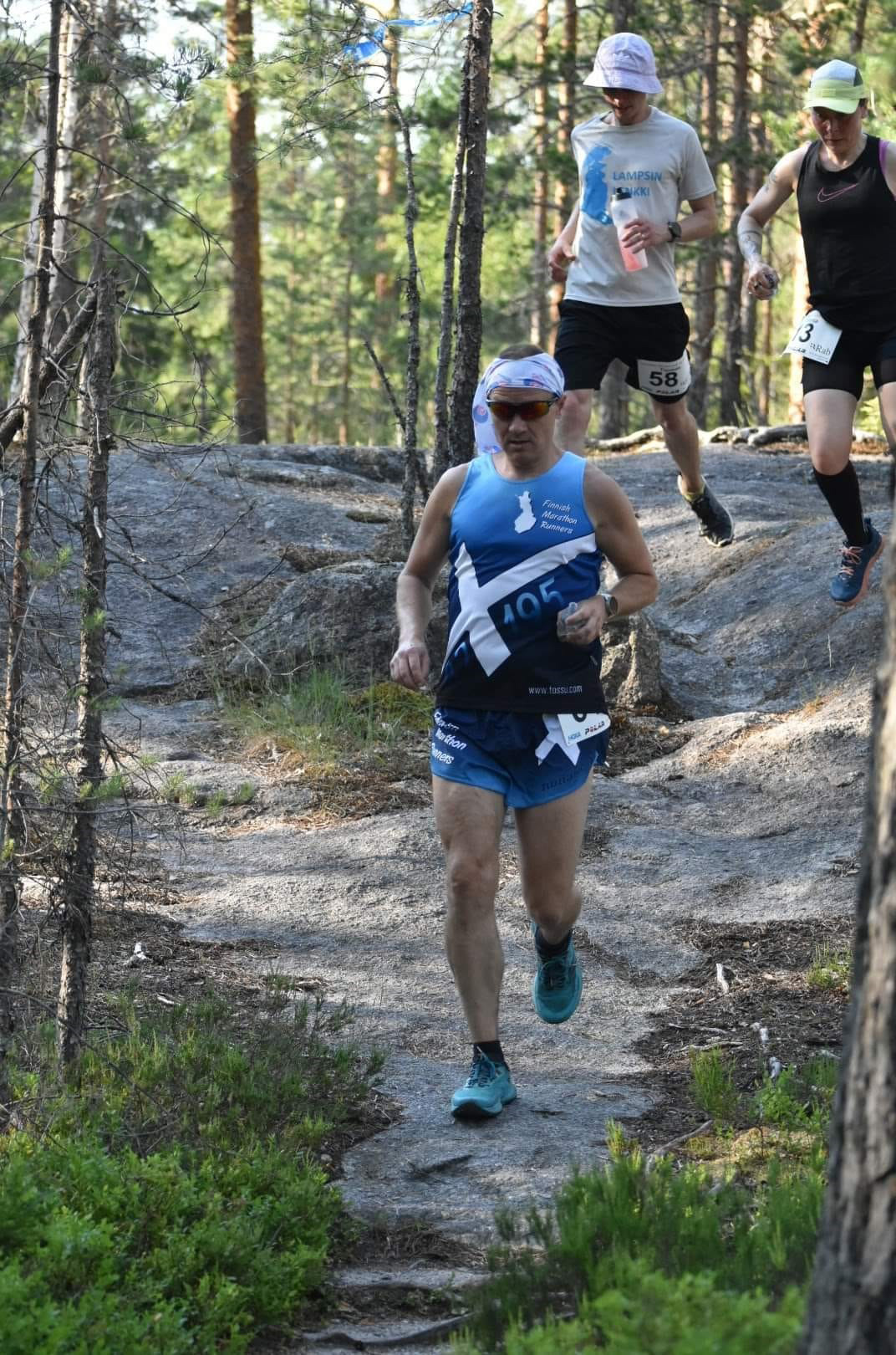 Syksyllä 2023 valmistautuminen näytti pahalta, sillä vasemman jalan pohkeesta napsahti Soleus-lihas pohjeluusta irti. Salibandypelissä, kuinkas muuten. Vammaa seurasi noin 3-4 kuukauden juoksutauko, jonka jälkeen aloitin lenkit vuodenvaihteen tienoilla niin että juoksua oli vain muutaman kymmenen metriä kerrallaan ja pääosa oli kävelyä. Sykkeet sai silläkin tavalla nostettua ihan PK:lle kun rämmin pitkin metsiä ja pienessä lumihangessa. Tammi-helmikuussa sain tehtyä erittäin hyvän peruskuntojakson hiihtämällä, se pelasti paljon, kiitos hyvän hiihtotalven. Juoksua oli helmikuun loppuun asti todella vähän. Maaliskuussa lähilatuja ei enää kunnostettu ja aloitin riskillä juoksutreenit nostamalla määrän kertaheitolla melkein nollista sataan. Toki edelleen joukossa oli paljon kävelypätkiä, mutta suurimman osan ajasta kuitenkin juoksin. Ja onnekseni kroppa kesti sen. Sain kokonaisuudessaan verrattain hyvän treenijakson tammikuulta kisan starttiin asti. Olin paremmassa kunnossa kuin edellisinä vuosina ja pidin +30h tulosta realismina ja sen myötä mahdollisuutta ihan voittokamppailuun. Edellisenä vuonna olin kolmas 28 kierroksella ja voittajan tulos oli silloin 33 kierrosta.