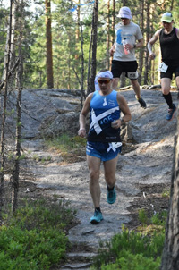 200-225 välin mäkisyys yllätti kyllä täydellisesti. Oli kyllä niin saatanan pitkää nousua että vitutti. Etukäteen olin ajatellut että viimeinen 30 km on lähes pelkkää laskua. Mutta se 25-30 km väli ennen maalia olikin päinvastoin melkein pelkkää nousua! Eikä saanut kävellä kyllä yhtään vaan piti runtata juosten kaikki, jotta kroppa pysyy kierroksilla eikä 27 tuntia vaan ala karkaamaan.